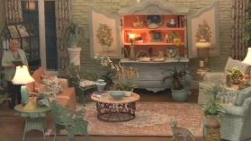 "The rug was the inspiration for the room," says Susan Farnik, standing beside her Camden Tea Garden Room exhibit. "It too two years of my life to stitch it. There's 48 holes per inch to stitch."